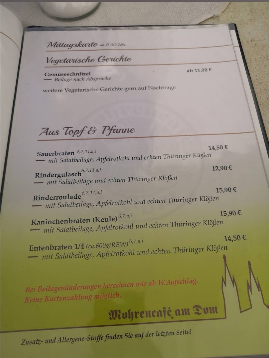 Discover Mohrencafe am Dom, a charming café ideally situated at Steinweg 16, right in the heart of the historic Naumburg (Saale), Germany. This delightful spot is not just a café; it's an experience that beckons locals and visitors alike with its warm atmosphere, delicious offerings, and captivating views of the Naumburg Cathedral.
